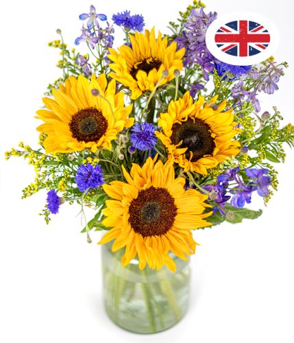 A cheerful combination of sunflowers, larkspurs, asters, and cornflowers display the best of British-grown blooms in our summer meadow bouquet. Sent in a special Eflorist box, this bouquet arrives in bud for lasting freshness, ensuring that the recipient can cherish the journey from bud to bloom and enjoy fresh flowers for longer. With just a splash of water and the included flower food, the blooms will burst into life within two days, offering a delightful surprise for your loved one. Locally grown and sourced, delivered straight to your recipient’s doorstep.